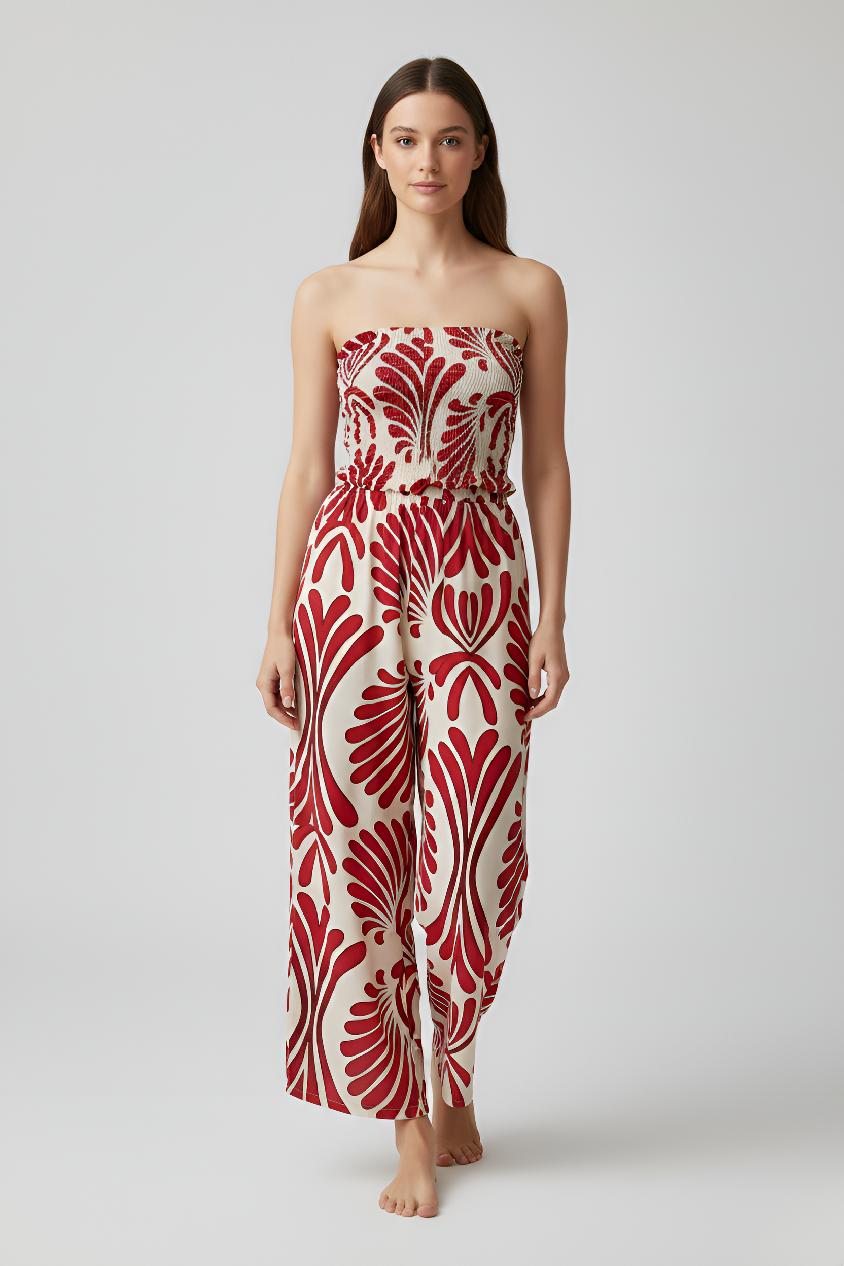 Step into effortless summer elegance with the Viola Prescott Summer Strapless Jumpsuit, designed for those who want to combine comfort and bold style in one chic piece.
